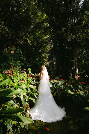Deep in the tropical jungle, you're surrounded by lush fauna and flora. Sacred mist dances through the air from the waterfall that flows overhead. The sounds of birds, flowing water, and the gentle tradewinds rustling through the jungle, brings you a sense of peace. You can't help but be present here. It demands you be present. To breath deeply. This space is sacred. Just like the love you and your sweethart share.